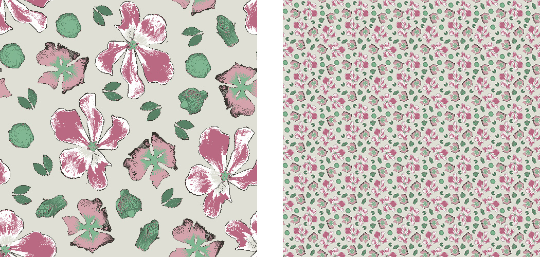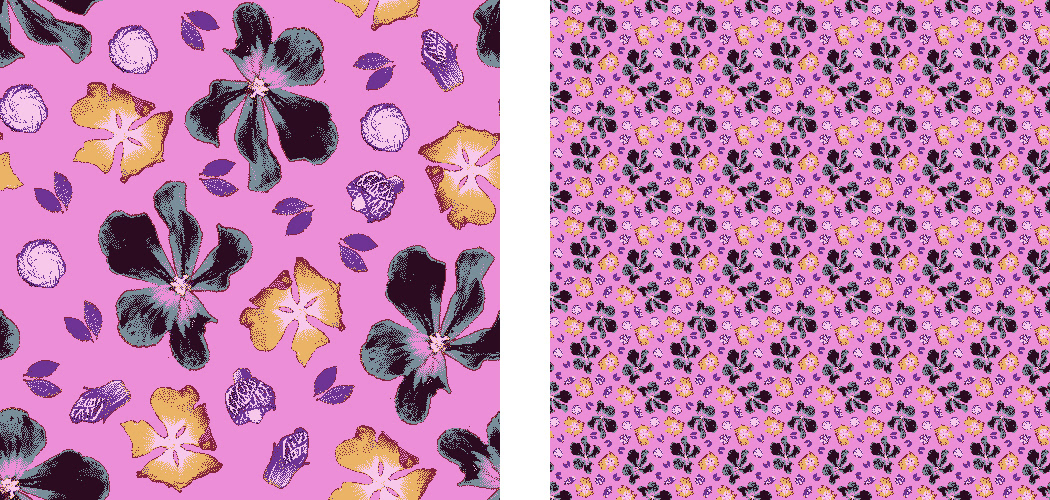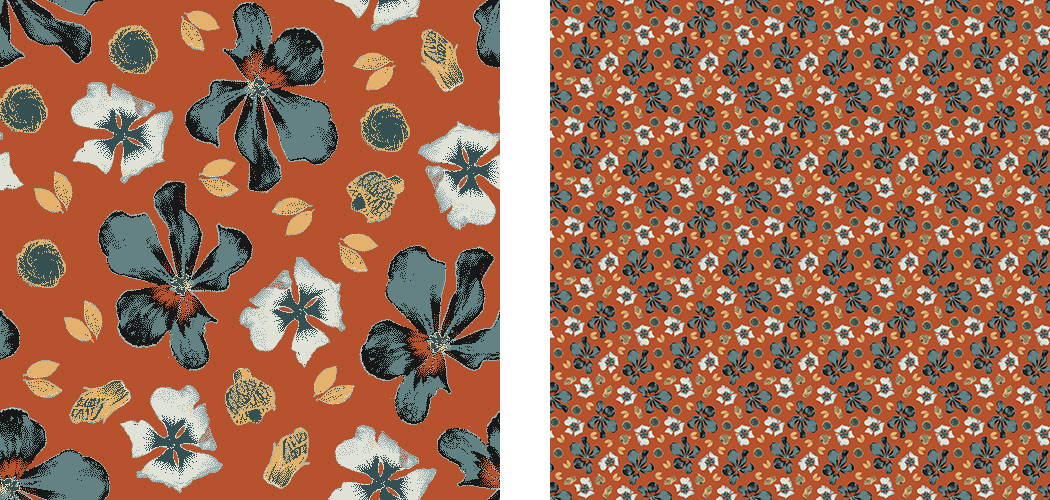 A collection of seamless floral textile patterns made from personal photographs of flowers.